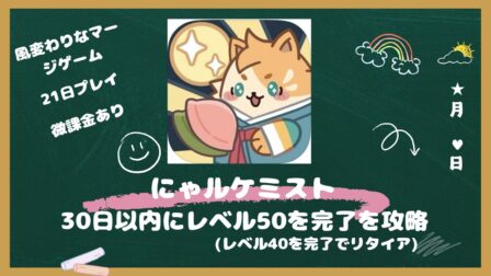 アプリ にゃルケミスト、30日以内にレベル50完了をレベル41まで攻略【ポイ活】